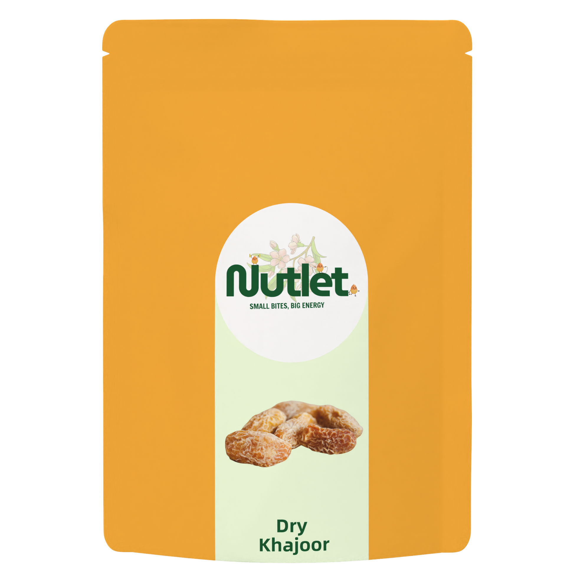 Nutlet Dry Khajoor, sourced from top palm groves, are hand-cleaned and carefully packed, delivering a sweet, wrinkled texture. These firm dates are great for porridges, chutneys, or snacking, offering lasting flavor. High in fiber, iron, and natural sugars, they support digestion, boost stamina, and combat fatigue. With potassium, they aid heart health and muscle function. A staple energy source. Try Nutlet for a healthier you!